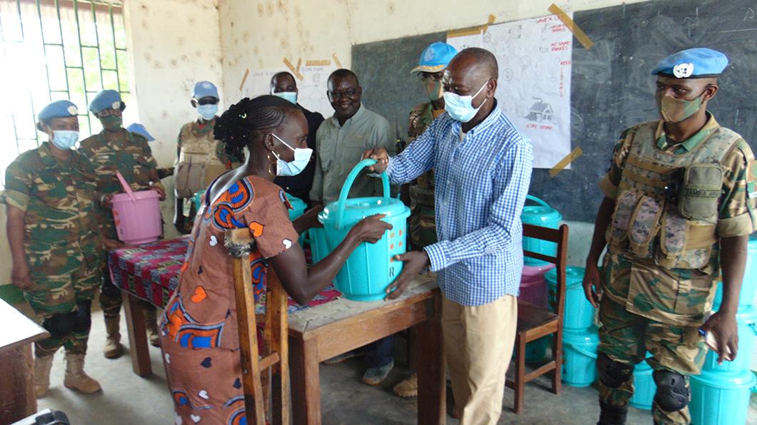 The joint MINUSCA team handed over hampers containing sanitary towels, bathing and washing soap, underwear, wrappers and towels to female pupils at the school – under the umbrella of the Mission’s Civil-Military Co-operation (CIMIC) activities.