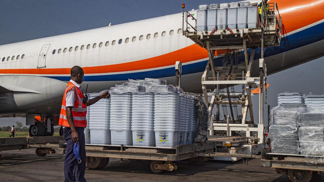 Electoral materials including ballot boxes, voting booths and electoral kits, part of a batch of electoral equipment donated by the Republic of South Africa to support the democratic process in the Central African Republic (CAR), arrived in the country’s capital Bangui on 3-4 December 2020.