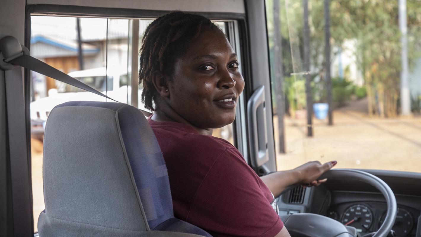 For Yolande Mazima Yasseko, choosing to become a driver came naturally: “When I was still at home and unemployed, I asked myself what I wanted to do and what I knew how to do well. For to do a job well, you first have to love what you do and then be supported by what is around you, so I said to myself, I drive really well, so why not drive as a profession? That's when I applied for a driver position.” She passed the recruitment process.