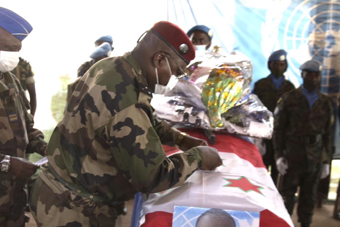 Sergeant Jean d'Amour Nsabimana (Rwanda) and Master Corporal Prosper Ndikumana (Burundi), who fell in action on 13 and 15 January in Bangui and Grimari respectively, during the recent post-election violence, were honoured by…