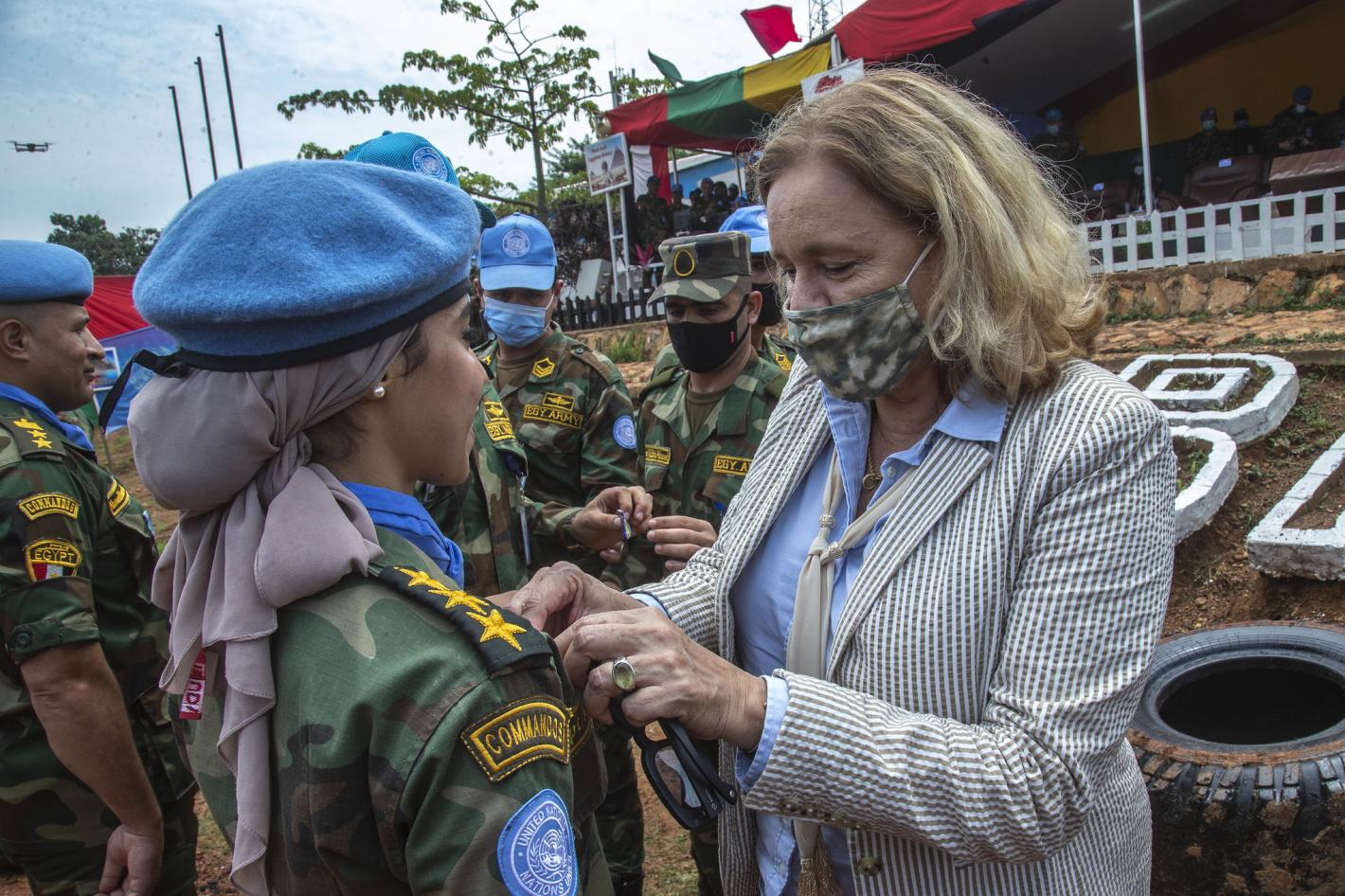 The Deputy Representative of the UN Secretary-General in the Central African Republic, Lizbeth Cullity, met with 80 beneficiaries of MINUSCA’s Community Violence Reduction (CVR) Programme, at two training centres – the Bon…