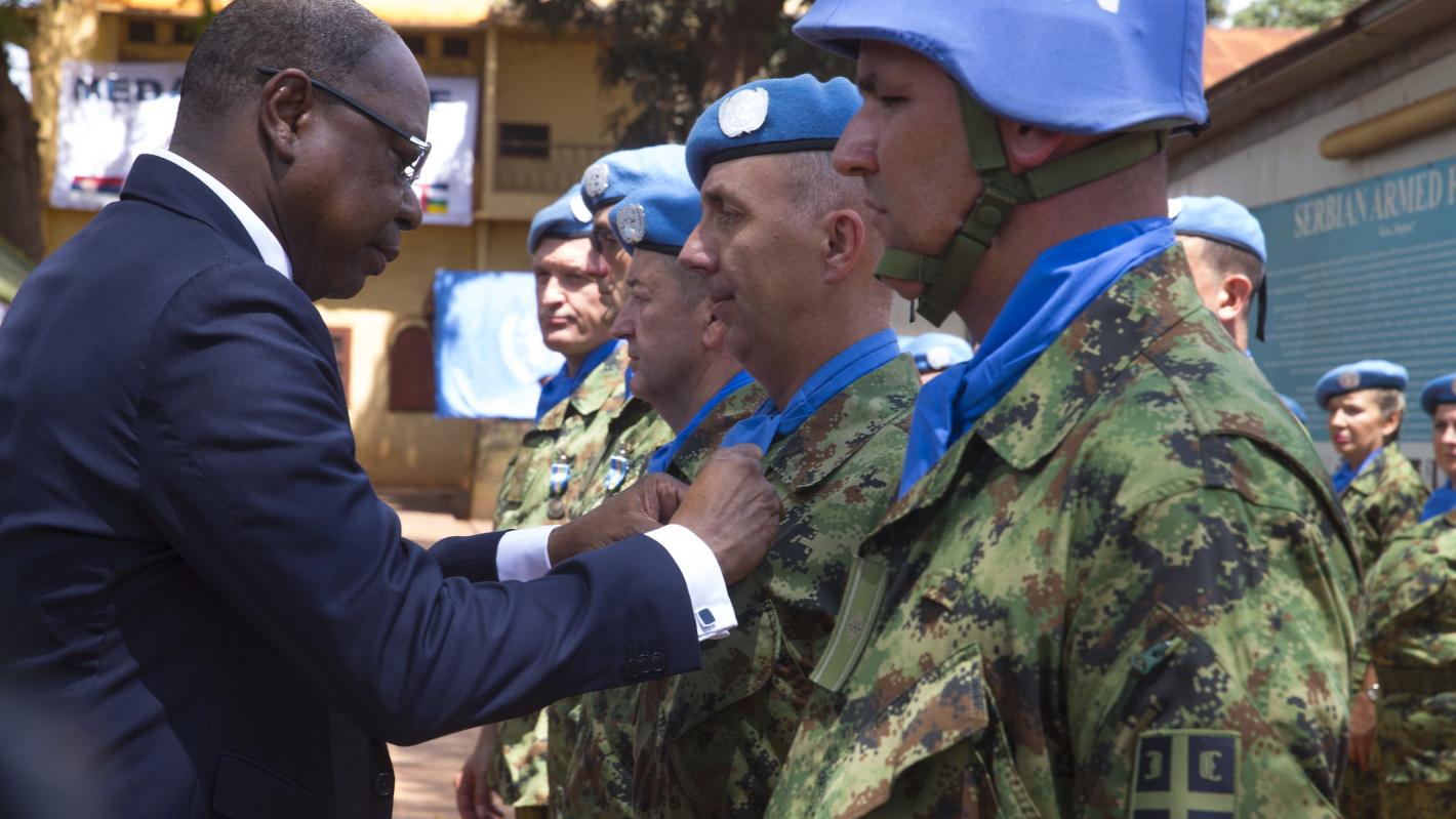 While preparing to leave and be replaced by another squad, the 72 blue helmets of the Serbian medical contingent within MINUSCA received the United Nations medal on 13 November 2019, as a recognition of their valuable and much appreciated efforts to keep the organization’s military, police and civilian staff members in good health and fit to perform their tasks and meet Mission mandate, and also for supporting many health facilities in the Central African Republic .