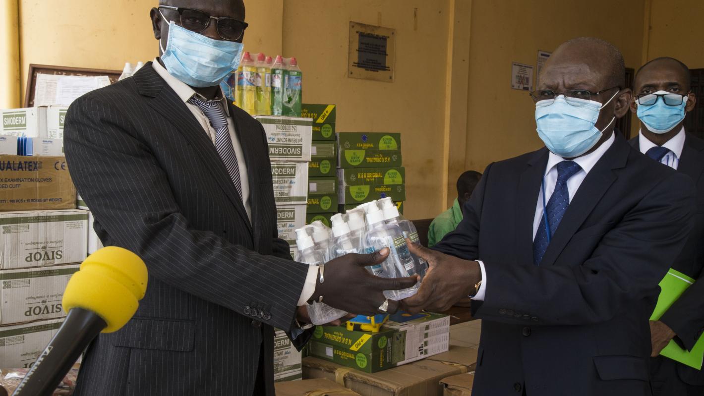 A large batch of protective equipment was simultaneously handed over to the Ministry of Justice, to enable the country's courts to continue to provide public services while helping to prevent the spread of the coronavirus (Covid-19) pandemic. Judicial activities in the CAR were severely impacted by the onset of the pandemic – with justice sometimes delayed due to Covid-19 restrictions. The equipment – valued at 27 million CFA – is primarily intended for the Court of Cassation, Court of Appeal and high courts in 18 jurisdictions and includes handwashing devices and hand sanitizer, protective masks, laser thermometers, disinfectant, liquid soap, latex gloves as well as drinking water storage tanks.