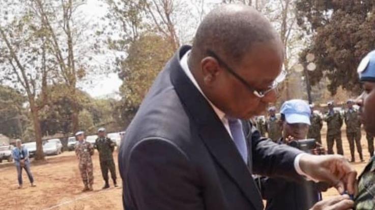 Deployed to Bangui in 28 February 2019, the 750-strong contingent (717 men and 33 women) honoured today has conducted various operations to facilitate the implementation of the MINUSCA mandate and restore state authority: they have ensured the security of high-level authorities and secured strategic sites in the capital city. They have furthermore manned security posts in the 3rd and 5th districts of Bangui to prevent inter-communal clashes; conducted patrols to eliminate criminality and protect civilians – most recently in the PK5 district as part of the Bangui Joint Task Force; and carried out civic and community work – notably the distribution of over 615,000 litres of water to the local population.