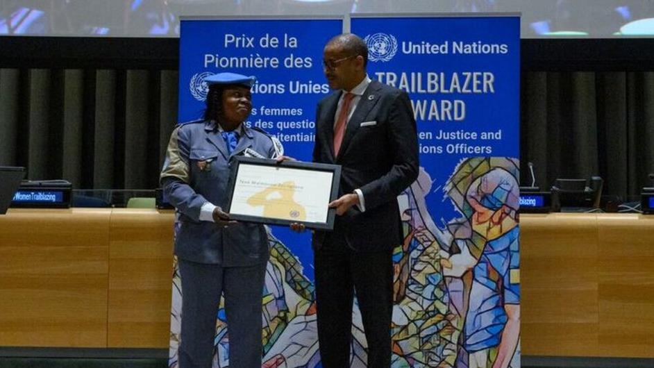 Téné Maïmouna Zoungrana, of Burkina Faso, serves with the UN Mission in CAR, MINUSCA. She received the United Nations Trailblazer Award for Women Justice and Corrections Officers at a special ceremony, at UN Headquarters in New York.