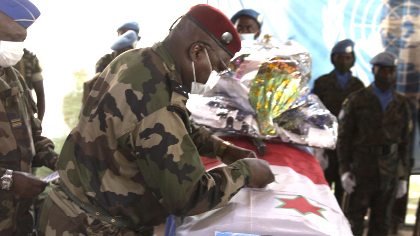 “When he lost his life, the late Master Corporal Prosper Ndikumana did not fail in his task; he was on the front line, rushing to protect the innocent population panicked by repeated attacks. He was a very reliable person, who always acted as a man of honour," said Lieutenant Colonel Jean Pierre Hakizimana, the commander of the Burundian Battalion (BURBATT), in his eulogy.
