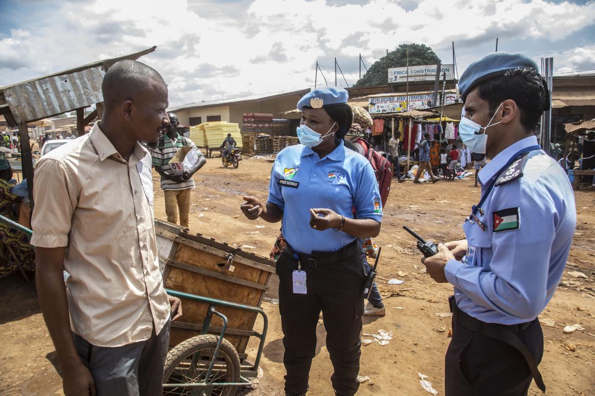 Crucially, UNPOL PROX has integrated responses to the coronavirus health crisis into their work. Together with the MINUSCA Civil Affairs Section and the CAR National Committee against Covid-19, the team has organized awareness-raising activities on COVID-19 prevention for Imams and pastors, women, youth, members of former armed groups and motorcycle cab drivers through neighbourhood visits.