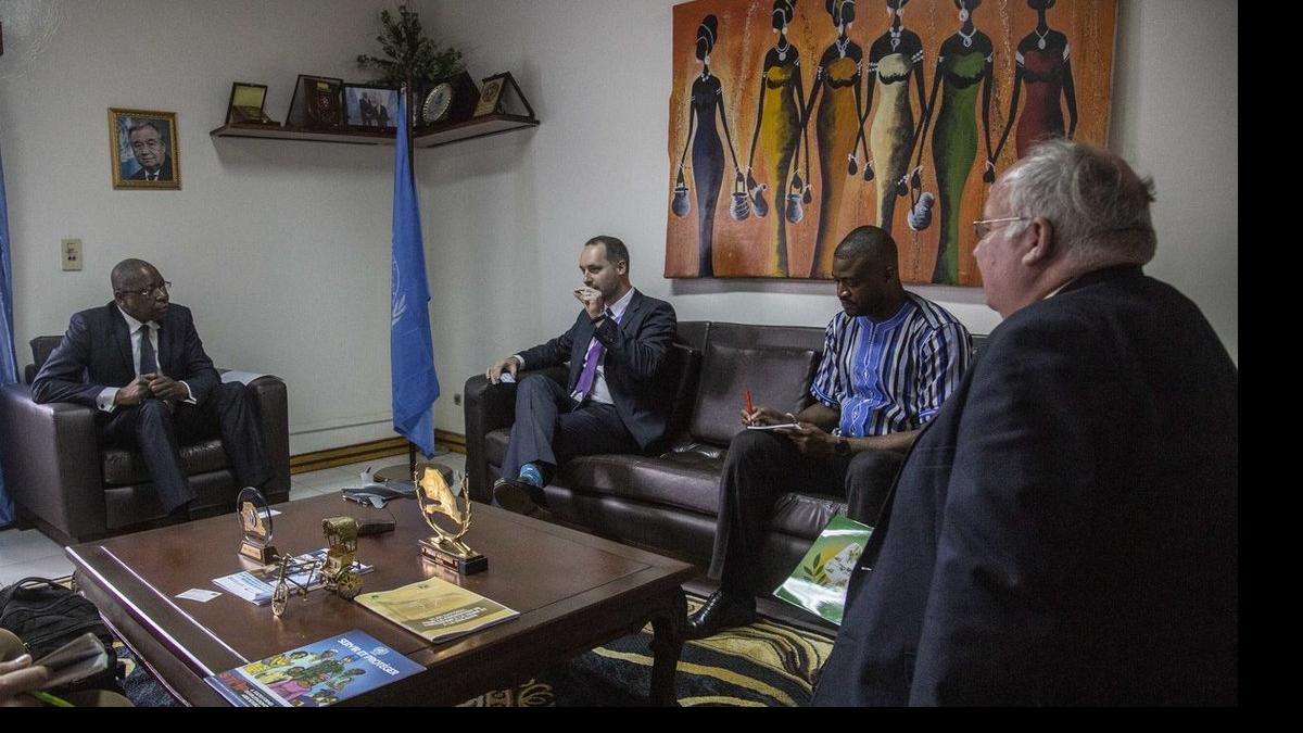 Executive Director Florian Irminger from Penal Reform International (PRI), an implementing partner for the MINUSCA Justice and Corrections Section, met with the SRSG Mankeur Ndiaye, on 31 October 2019, to update him on the demilitarization strategy for the Central African prison service. The PRI has supported the Government of the Central African Republic in the development of the strategy and a 5-year action plan for its implementation.