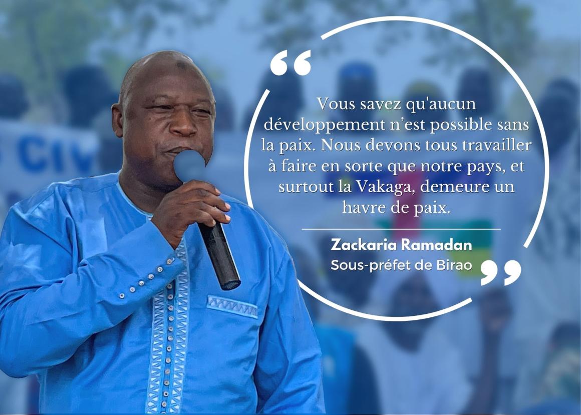 S’exprimant à cette occasion, le Sous-Préfet de Birao, Zackaria Ramadan, s’est réjoui de cette forte mobilisation de la population qui atteste, à son avis, que la paix est une réalité à Terfel, appelant, à la même occasion, les communautés locales à la consolider. « Vous savez qu'aucun développement n’est possible sans la paix. Nous devons tous travailler à faire en sorte que notre pays, et surtout la Vakaga, demeure un havre de paix », a-t-il lancé aux chefs coutumiers des différents villages.