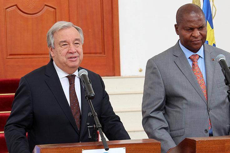 « Le message essentiel de cette visite est qu’il faut un engagement de la communauté internationale pour réduire ces souffrances (…), car il y a une opportunité de construire une Centrafrique nouvelle en paix, en sécurité et en prospérité », s’est exprimé le premier responsable de l’ONU, lors d’un point de presse au terme de son entretien à huis-clos avec le Président de la République.