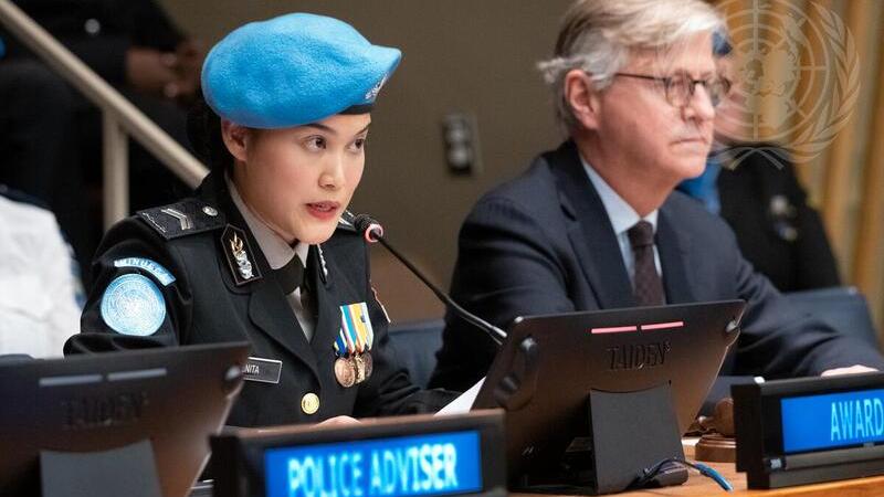 « Où que vous soyez : rappelez-vous de votre potentiel illimité. Vous possédez le pouvoir de changer les choses, d’inspirer les autres et de laisser une marque durable sur le monde », a déclaré la sergent-chef Renita Rismayanti, déployée au sein de la Mission des Nations Unies en République centrafricaine, en acceptant le prix de la Policière de l'ONU de l'année au siège de l'ONU ce jeudi.