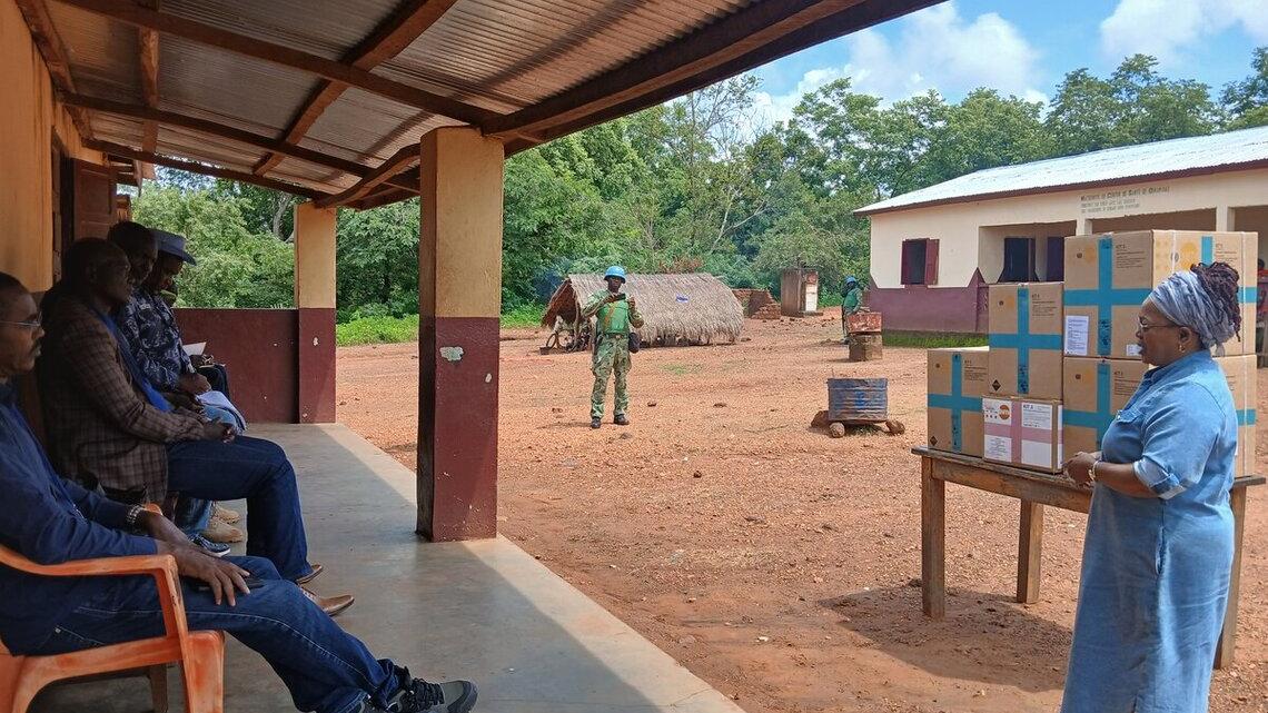Ils sont plus de 3 200 personnes à avoir fui leurs villages pour se réfugier à Ouham Bac, à près 35 km de là, à la suite d’affrontements entre groupes armés début juin 2025 à Dan-Gbabiri (Ouham-Pendé). En appui aux efforts nationaux, la MINUSCA intensifie ses efforts pour apporter des réponses aux défis sécuritaires et humanitaire qui en découlent, et encourager le dialogue. C’est ainsi que le 23 juillet 2025, une délégation conduite par la cheffe du bureau régional de la Mission, accompagnée du représentant du gouverneur de Yade, s’est rendue dans la commune de Ouham Bac (Ouham) pour rencontrer les autorités locales et les représentants des déplacés.