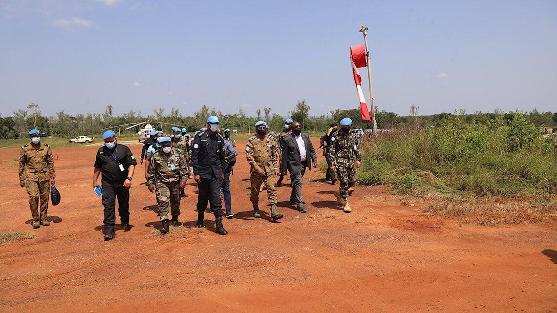 Une mission conjointe composée du Commandant de la Force de la MINUSCA, le Général Daniel Sidiki Traore, du Commandant de la composante Police de l’ONU, le Commissaire Christophe Bizimungu et du Directeur adjoint des services d’appui à la Mission, Emmanuel Agawu, s’est rendue, le jeudi 18 novembre 2021, à Bambari (centre de la RCA). Le but de cette visite est d’évaluer la situation sécuritaire et de s’imprégner des conditions de travail du personnel.