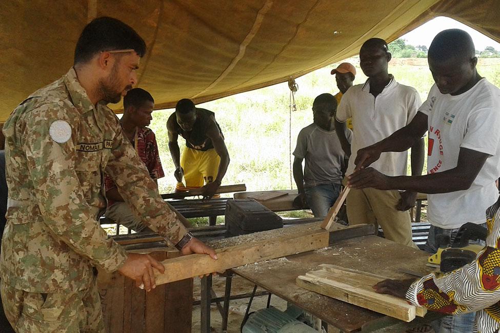 « Vous savez, à Kaga-Bandoro nous sommes nombreux. Par conséquent, il n’y a pas assez de travail pour tout le monde […] Avant je ne savais pas fabriquer une table ; maintenant je vais pouvoir en confectionner et m’occuper de ma famille ». C’est en substance l’expression de joie de Leonard Bessin. Le jeune garçon fait partie des 49 jeunes, sélectionnés dans la préfecture de la Nana Gribizi, à avoir bénéficié d’une formation en menuiserie. La session a été animée par le contingent Pakistanais de la MINUSCA, en complément de sa mission qui est d’assurer la sécurité de la population.