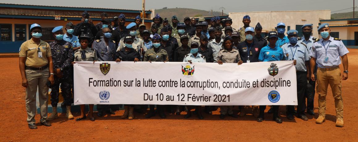 Afin de contribuer à la lutte contre la corruption au sein des Forces de sécurité intérieures (FSI), la Police de la MINUSCA (UNPol), conformément à son mandat, a organisé, du 10 au 12 février 2021, un atelier de renforcement de capacités, au bénéfice de 50 membres du personnel de la Police et de la Gendarmerie centrafricaines.