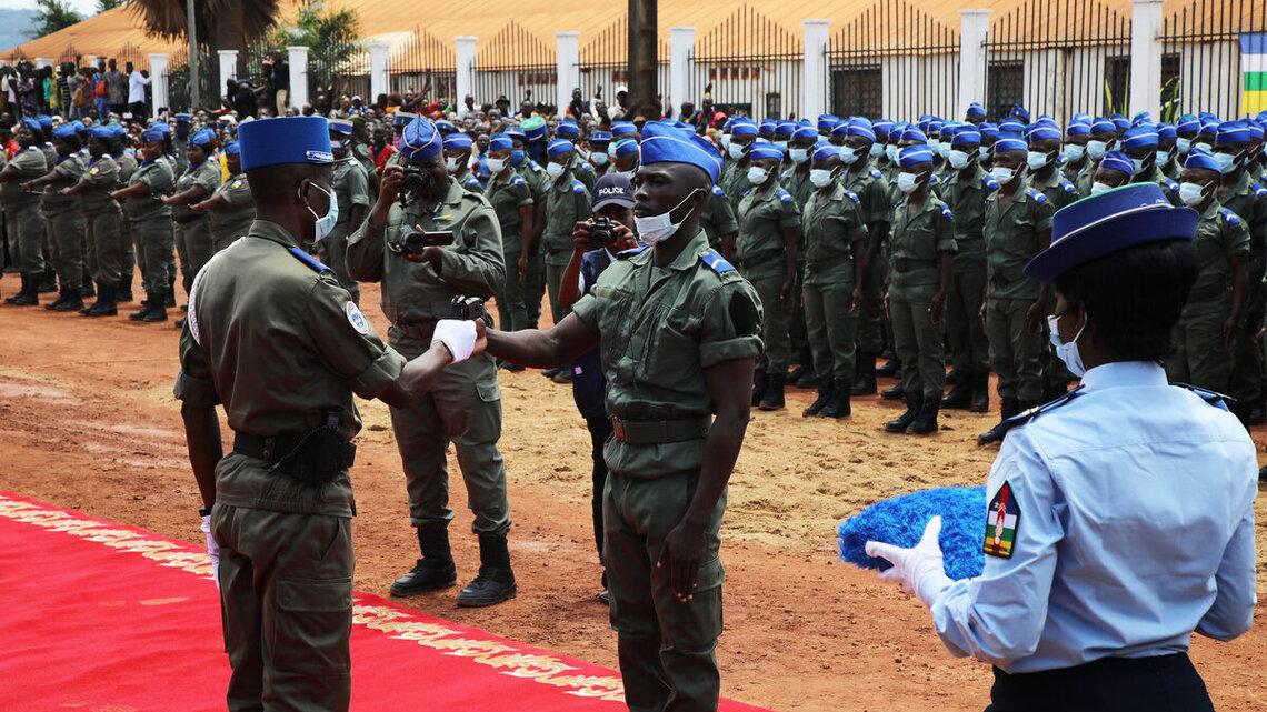 « Je suis que votre formation, adaptée à la situation actuelle de notre pays, vous permettra de travailler dans le strict respect des droits de l’Homme et des libertés fondamentales pour la défense opérationnelle du territoire, la sécurité publique ainsi que la protection des personnes et de leurs biens », a indiqué le Chef de l’Etat, Faustin Archange Touadéra, qui présidait la cérémonie.