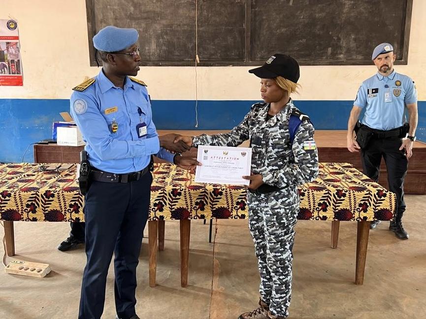 La police de la MINUSCA a organisé entre le 23 et le 30 août 2024 à Bangui deux formations distinctes à l'École nationale de police pour les policiers et au Camp Izamo pour les gendarmes, dans le cadre du renforcement des capacités des Forces de sécurité intérieure (FSI). Ces formations ont concerné 60 membres des FSI, dont 22 femmes, répartis en deux groupes : la formation des gendarmes portait sur la police judiciaire, tandis que celle des policiers était axée sur la police administrative.