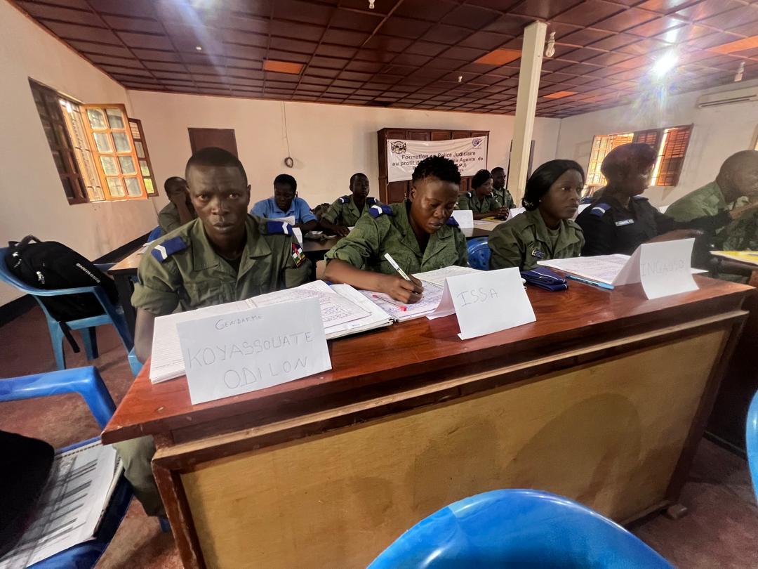 Saly Baro Drame, formatrice de la MINUSCA, a précisé les objectifs et les résultats attendus de cette formation : « Les participants seront désormais capables de maîtriser les notions du commandement opérationnel et tactique, le droit pénal général ainsi que la procédure pénale aboutissant à la rédaction des procès-verbaux, ce qui leur permettra de mener à bien leur mission de maintien de l’ordre et de protection des civils ».
