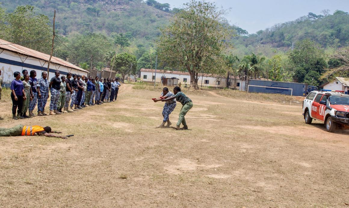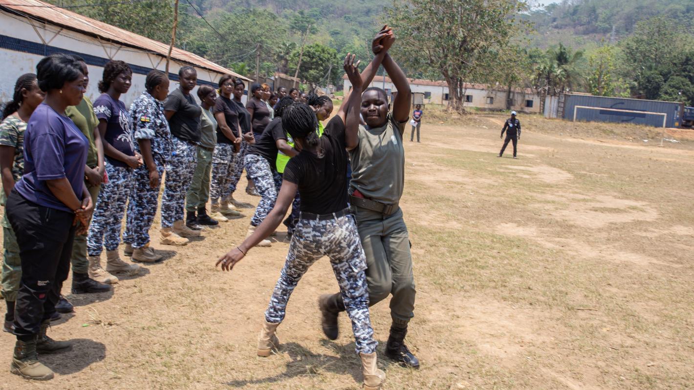63 femmes membres de la police, de la gendarmerie et des Forces armées centrafricaines (FACA) sont désormais mieux préparées pour assurer la protection des hautes personnalités et contribuer à la sécurité de leur pays. Après une série de formations organisée par la police de la MINUSCA du 12 au 14 et du 24 au 26 mars 2025, ces femmes ont exécuté une démonstration sur les connaissances acquises ce 26 mars à Bangui.
