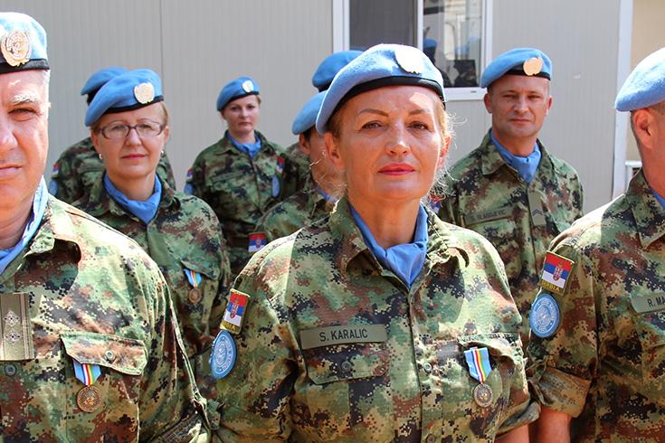 En outre, la Représentante spéciale adjointe du Secrétaire général des Nations Unies a été particulièrement heureuse de voir une forte représentation de femmes parmi ceux qui ont reçu les médailles de la paix : 24 femmes membres du contingent serbe. Pour elle, cela sert à souligner l'importance de la pleine participation des femmes dans la prévention et la résolution des conflits, la consolidation et le maintien de la paix. Le mois dernier, a-t-elle fait savoir, le Conseil de sécurité des Nations unies a adopté à l'unanimité la résolution 2242 qui appelle à la participation accrue des femmes dans la résolution des conflits, y compris le doublement du nombre de femmes occupant des postes de maintien de la paix au cours des cinq prochaines années.