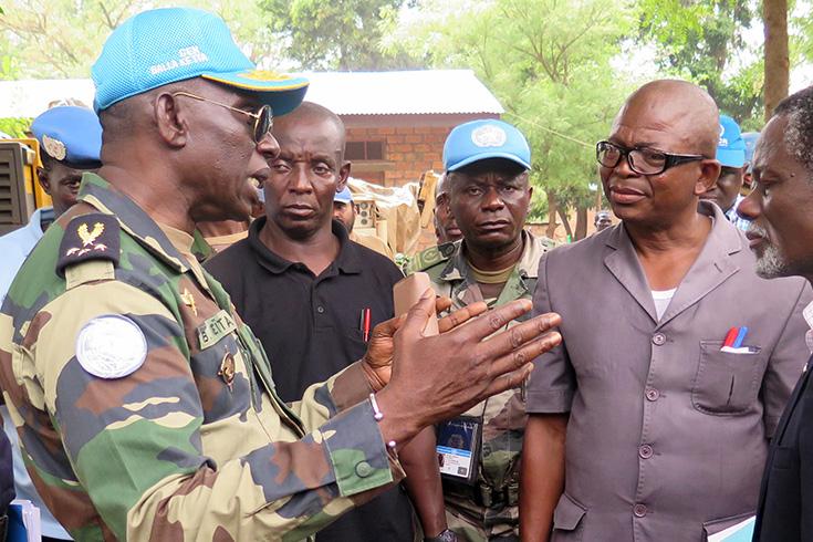 Le Chef de la MINUSCA était accompagné, pour l’occasion, du Commandant de la Force, le Général Balla Keita, du Commissaire de la Police de la Mission, Luis Carrilho, du Directeur adjoint du support de la Mission, Emmanuel Komla Agawu et de la Cheffe de l’Unité Conduite et Discipline, Mme Carmen Perez-Salas.
