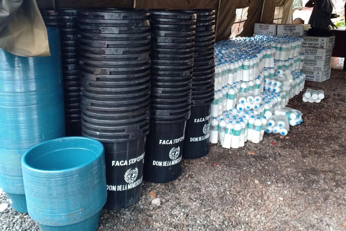 C’est un lot composé de matériels et équipements d’hygiène parmi lesquels des solutions hydroalcooliques, et des thermomètres à infrarouge avec chargeurs photovoltaïques, entre autres, d’une valeur globale de 47.850.000 Francs CFA qui a été mis à la disposition des Forces armées centrafricaines (FACA) pour soutenir leur plan de riposte à la pandémie Coronavirus, ce vendredi 20 juin 2020, au Ministère de défense nationale et de la reconstruction de l'Armée à Bangui.