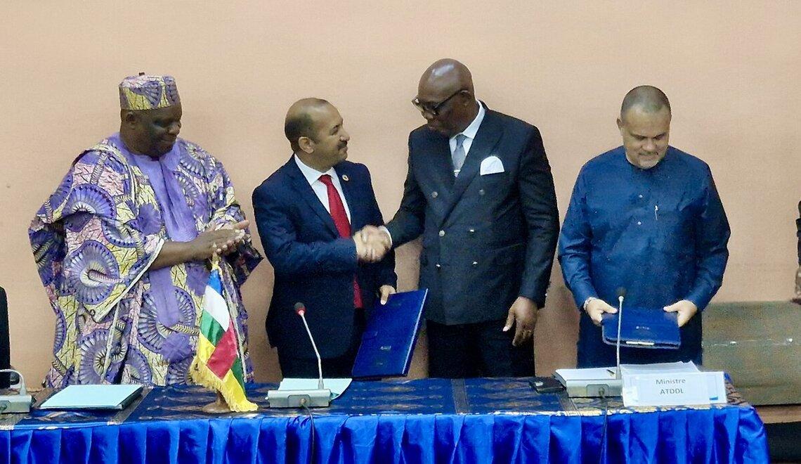 La MINUSCA et le PNUD signent un accord de financement d’un montant dépassant un million de dollars américains, le 18 juin 2024, pour soutenir les préparatifs des élections locales prochaines, notamment l'enregistrement des électeurs. Le document a été paraphé lors de la réunion du Comité stratégique d’appui au processus électoral, présidé par le Premier ministre Félix Moloua, en présence du ministre de l’Administration du territoire, de la Décentralisation et du Développement local, et du Président de l’Autorité nationale des élections (ANE).