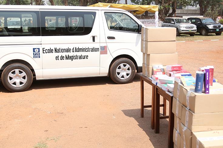 Dans le cadre de son appui technique et logistique à l’Ecole Nationale d’Administration et de Magistrature (ENAM), la section des affaires judiciaires et pénitentiaires de la MINUSCA, conjointement avec le PNUD, a procédé, ce 1er février 2017, à la remise officielle de bâtiments réhabilités (amphithéâtres, salle de conférence, bibliothèque, salle des archives, réfectoire) aux responsables de ladite institution. Ces derniers ont également eu droit à du mobilier, ainsi que d’un minibus et d’un lot d’ouvrages destinés à la bibliothèque.