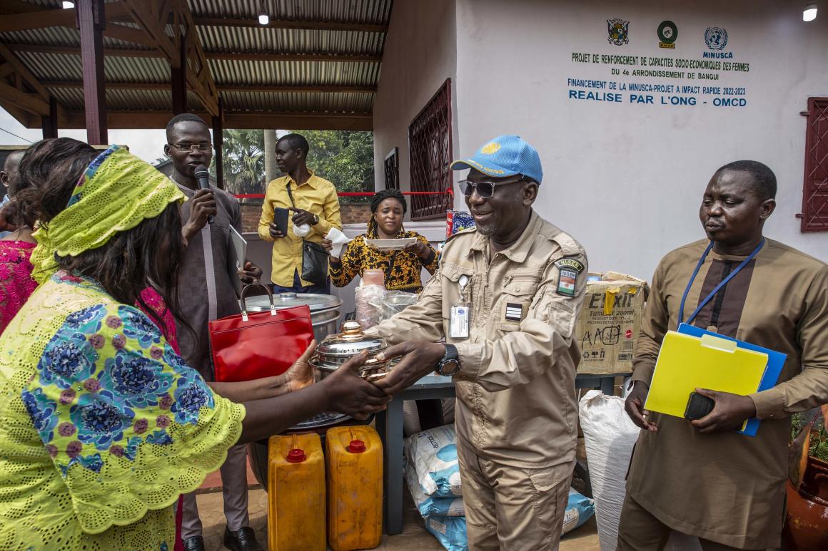 Financé par la MINUSCA et mis en œuvre par l’Organisation des mamans centrafricaines pour le développement (OMCD), l'objectif de ce Projet à impact rapide est de permettre aux femmes bénéficiaires de mener leurs propres activités économiques puis de se constituer en groupe d'épargnes communautaires afin d'avoir une plus grande autonomie financière.