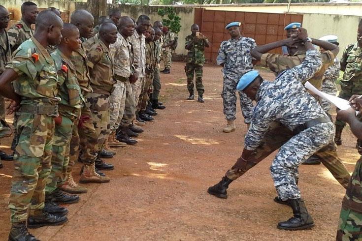 La Direction de l’Administration Pénitentiaire et l’Etat-major des forces armées centrafricaines appuyées par la Section des Affaires judiciaires et pénitentiaires de la MINUSCA a lancé, le jeudi 18 juin 2015 au sein du Camp MAMICA à Bangui, une série de formations continues au profit du personnel du premier Bataillon d’Infanterie Territorial (BIT1), à l’effet de renforcer les capacités de chaque section avant son déploiement pour l’exercice du service public pénitentiaire à la prison de Ngaragba et de son annexe du camp de Roux.