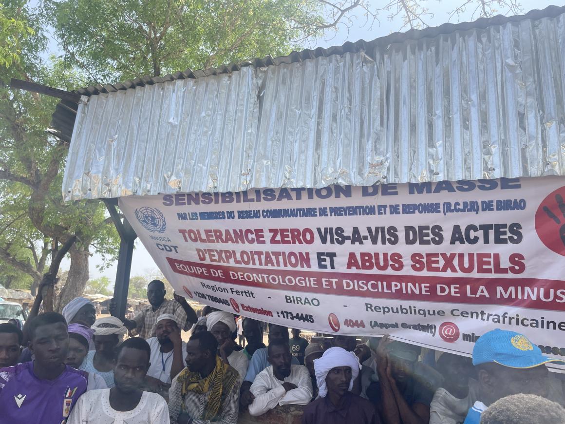 Le 02 avril 2025, le bureau de la MINUSCA a, en partenariat avec le Haut-Commissariat des Nations unies pour les réfugiés (HCR) et la Commission Nationale pour les Réfugiés (CNR), sensibilisé à Birao, dans la Vakaga, plus de 500 réfugiés soudanais dont plus de 400 femmes à la lutte contre les abus et exploitations sexuelles et à la promotion de la politique de Zéro Tolérance pour les Nations Unies.