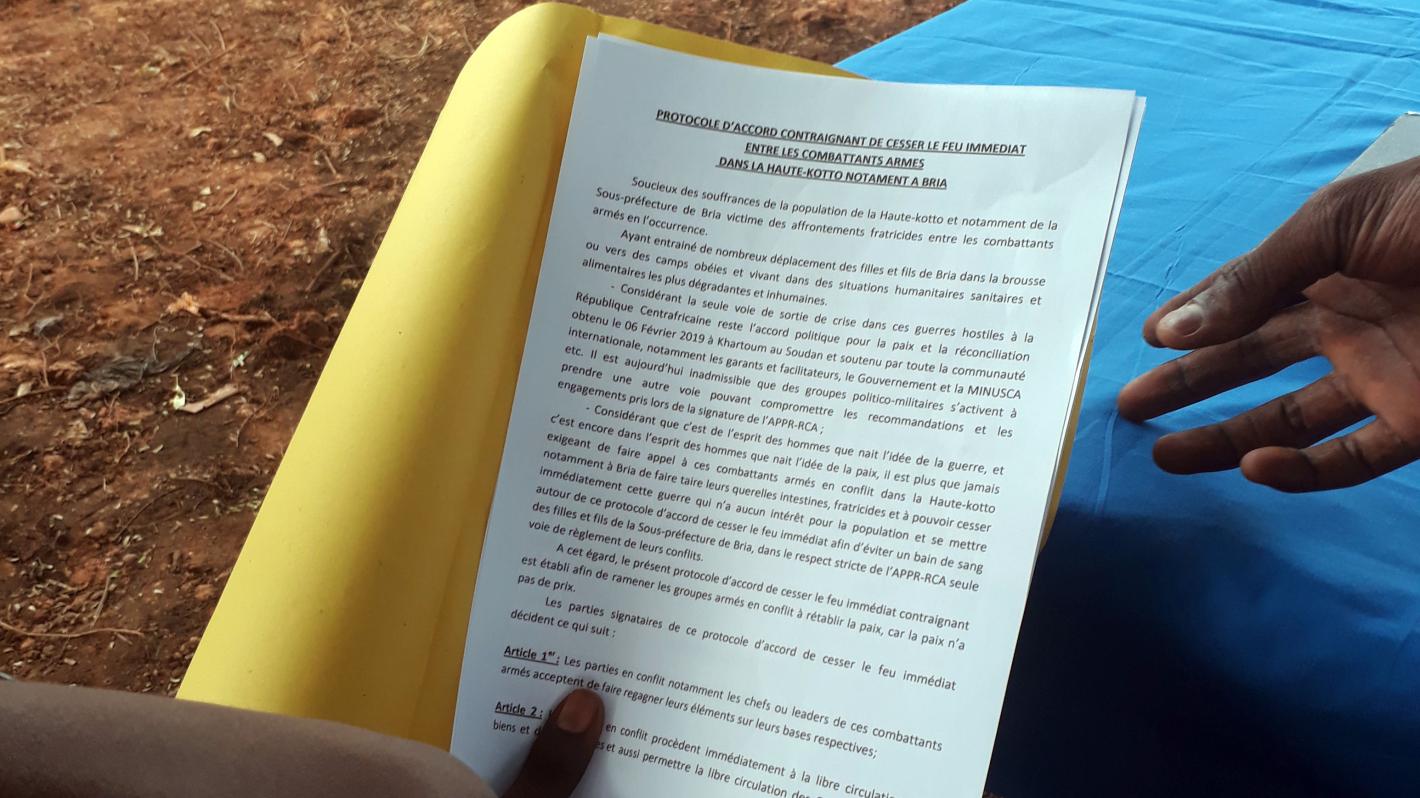 Bria, ville de l’Est de la République centrafricaine, a abrité un événement majeur, le 18 mars 2020. Les deux factions du Front populaire pour la renaissance de la Centrafrique (FPRC) en conflit ouvert depuis fin janvier 2020, ont fumé le calumet de la paix. Ils ont signé un accord de ‘’cessez-le-feu immédiat’’, par le biais de leurs figures de proue, Damboucha Hissein et Ali Housta.