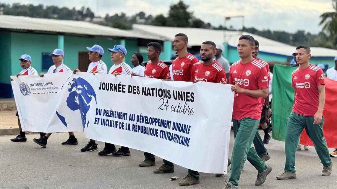 Près de 200 participants, dont les autorités locales, les contingents de la MINUSCA, le personnel des agences onusiennes et des partenaires locaux, tels que l'Organisation des femmes centrafricaines (OFCA) et le Conseil préfectoral de la jeunesse de la Nana Mambere, ont pris part à une marche pour la paix et le développement.