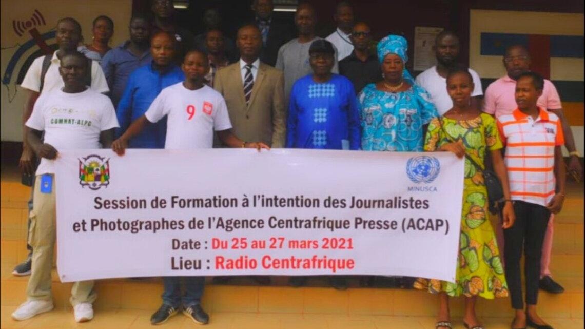 Bangui, 28 mars 2021 – Le représentant du ministre de la Communication et des Medias, Omer Sambia, a procédé, samedi dernier, à Bangui, à la clôture des travaux de la session de remise à niveau des journalistes et des photographes de l’Agence Centrafrique Presse (ACAP), en présence du chargé des relations avec les médias de la MINUSCA, Guy Karema.