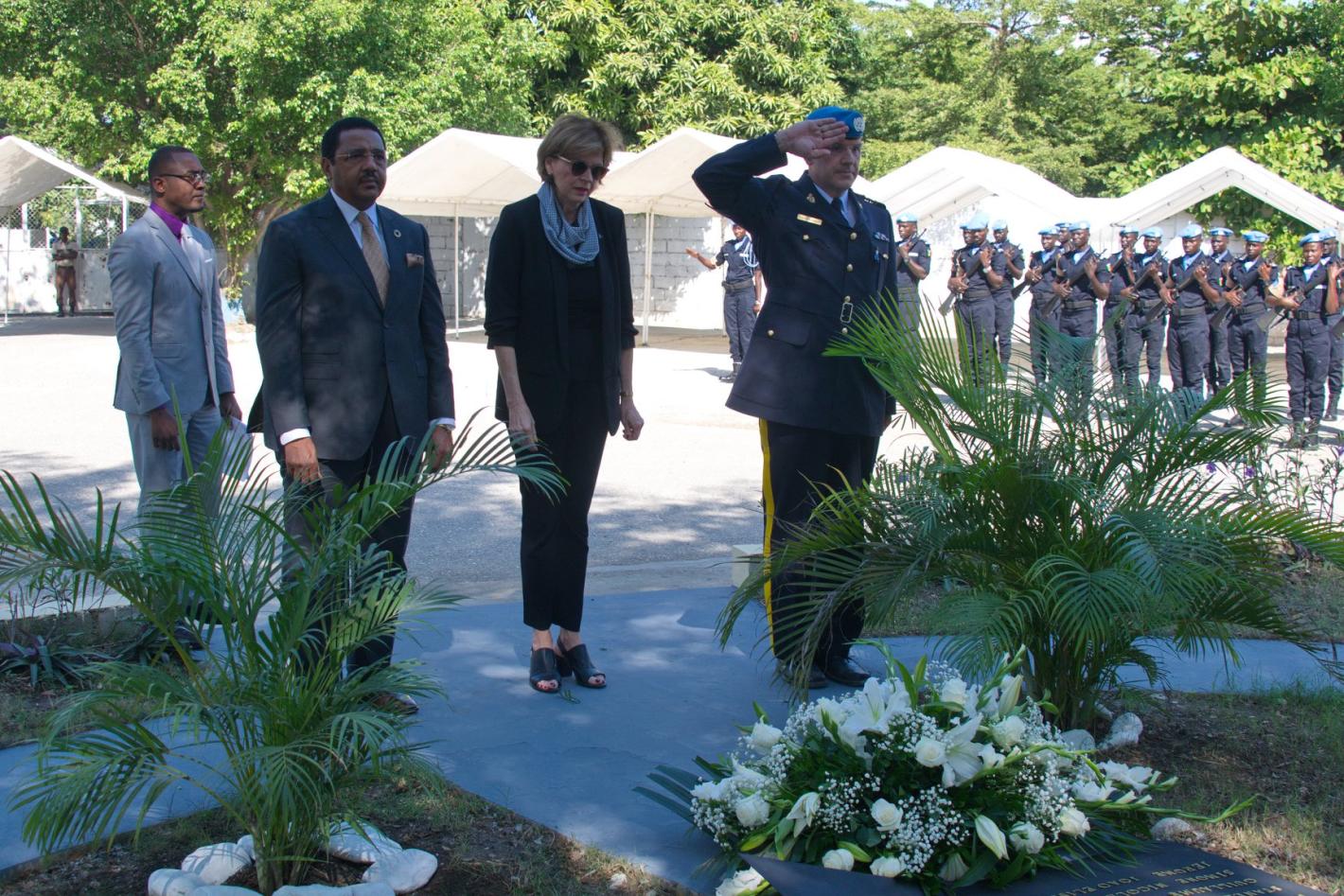 La Représentante spéciale du Secrétaire général des Nations Unies en Haïti a rendu hommage aux familles et proches des victimes du tremblement de terre du 12 janvier 2010. © UNPOL Mahamadou Hafizou Djibrilla / UN / MINUJUSTH, 2019