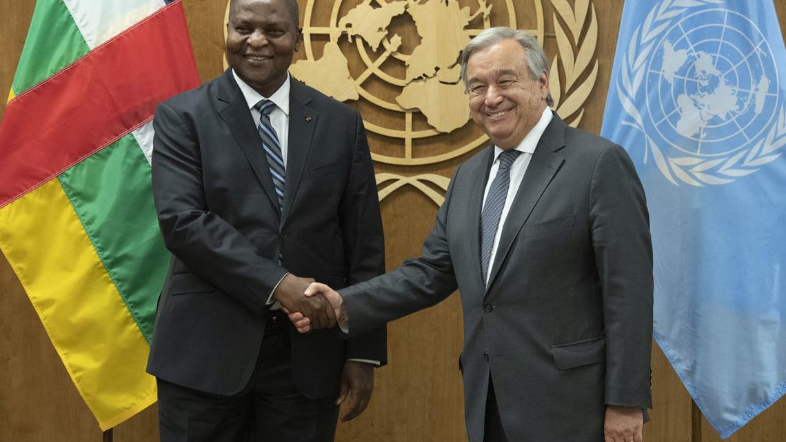 Le Secrétaire général s’est entretenu avec son Excellence Mr. Faustin Archange Touadéra, Président de la République centrafricaine. Le Secrétaire général a salué les progrès enregistrés dans la mise en œuvre effective de l'Accord politique pour la paix et la réconciliation et a salué la mise en place d'un gouvernement inclusif.