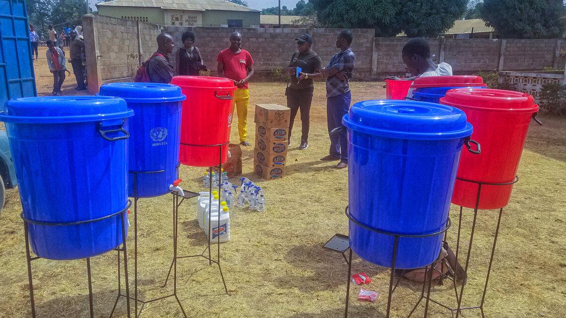 Ce sont des seaux, des bouteilles de gel hydroalcoolique, des bidons d’eau de javel, des pains de savon ainsi que du savon en poudre, qui ont été remis par la Mission via sa section Droits de l’Homme à Bouar, appuyée par la division de la Communication stratégique et de l’information publique, pour l’usage des 3000 personnes réparties sur quatre sites sur le domaine clérical.