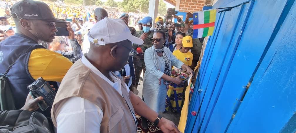 Le Premier ministre centrafricain, Félix Moloua, et la Représentante spéciale du Secrétaire général des Nations Unies, Valentine Rugwabiza, ont inauguré, le 24 février, plusieurs projets à Sam-Ouandja (Nord-est), dans la préfecture de la Haute-Kotto. Cette visite conjointe, à laquelle ont participé des agences des Nations Unies et d'autres partenaires de la République centrafricaine (RCA), avait pour objectif de constater le retour progressif de l’autorité de l’État dans cette localité qui compte environ 26 000 habitants.