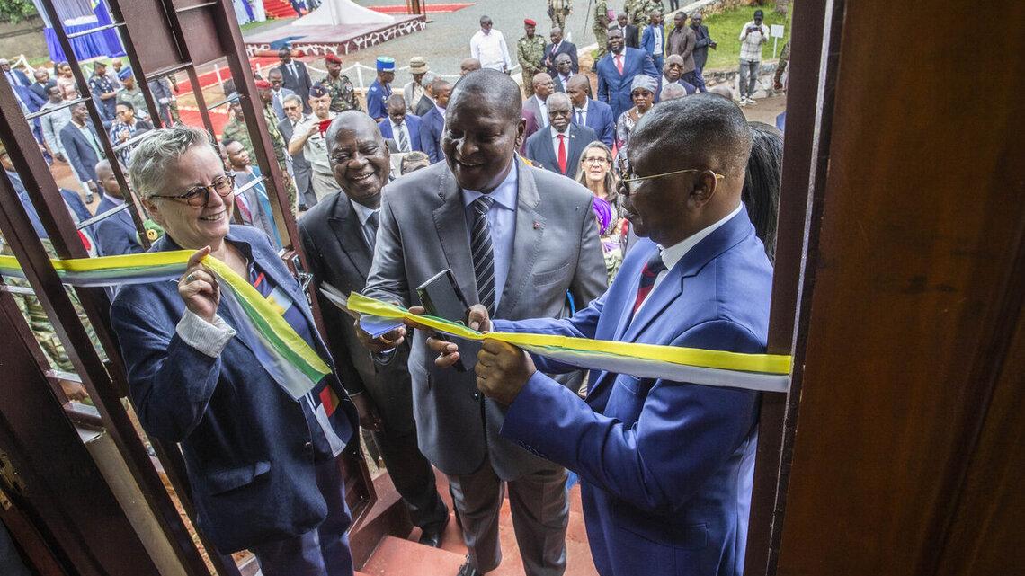 Le ministère de la Défense nationale a officiellement réceptionné, le 14 mai 2024, deux bâtiments destinés à accueillir les bureaux de l'Inspection générale de l'Armée nationale (IGAN). Ces deux édifices ont été équipés par la MINUSCA pour un investissement total de plus de 97 millions de francs CFA. La cérémonie de remise des bâtiments s'est déroulée en présence du Président de la République, Faustin Archange Touadera, de la Représentante spéciale adjointe du Secrétaire général de l'ONU en République centrafricaine, Joanne Adamson, de membres du Gouvernement, de représentants du corps diplomatique, ainsi que de hauts gradés de l'armée et de la police.