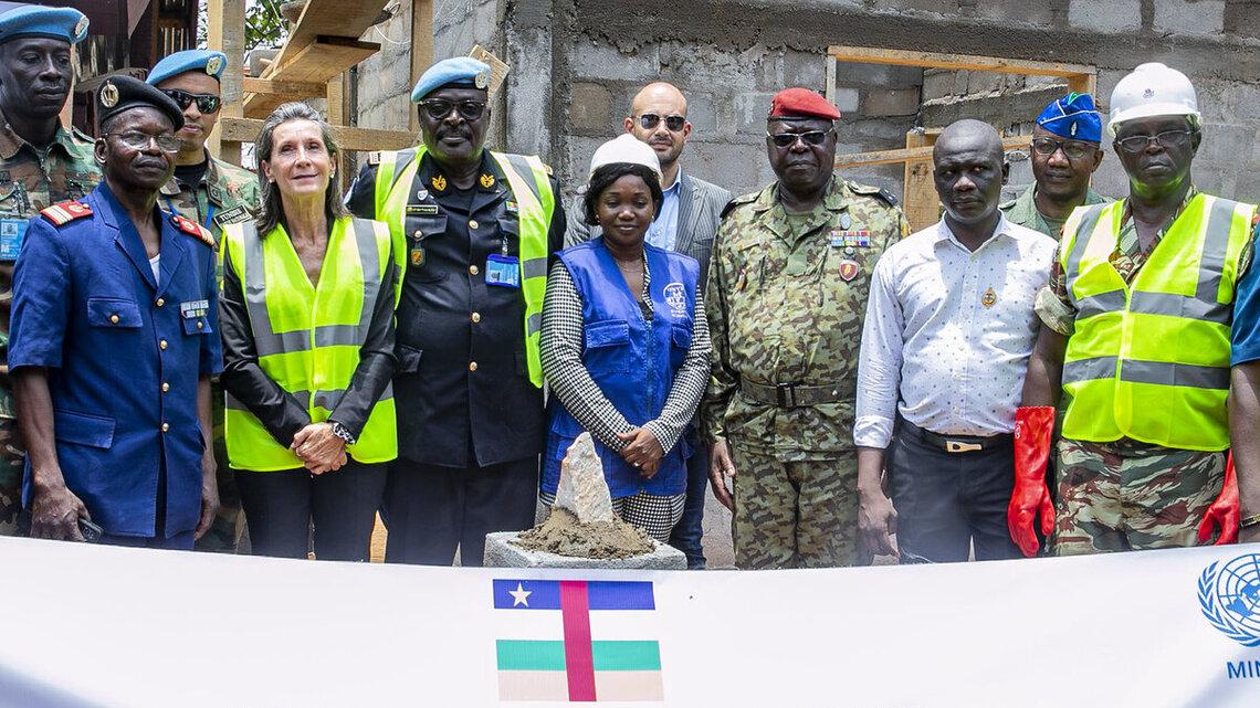 La maternité du camp Henri Izamo va bientôt bénéficier de nouveaux locaux et d’une réhabilitation du bâtiment principal. La cheffe de section de la Réforme du Secteur de Sécurité de la MINUSCA et le Directeur des services de santé de la gendarmerie nationale ont posé la première pierre des travaux le 17 mars 2023.