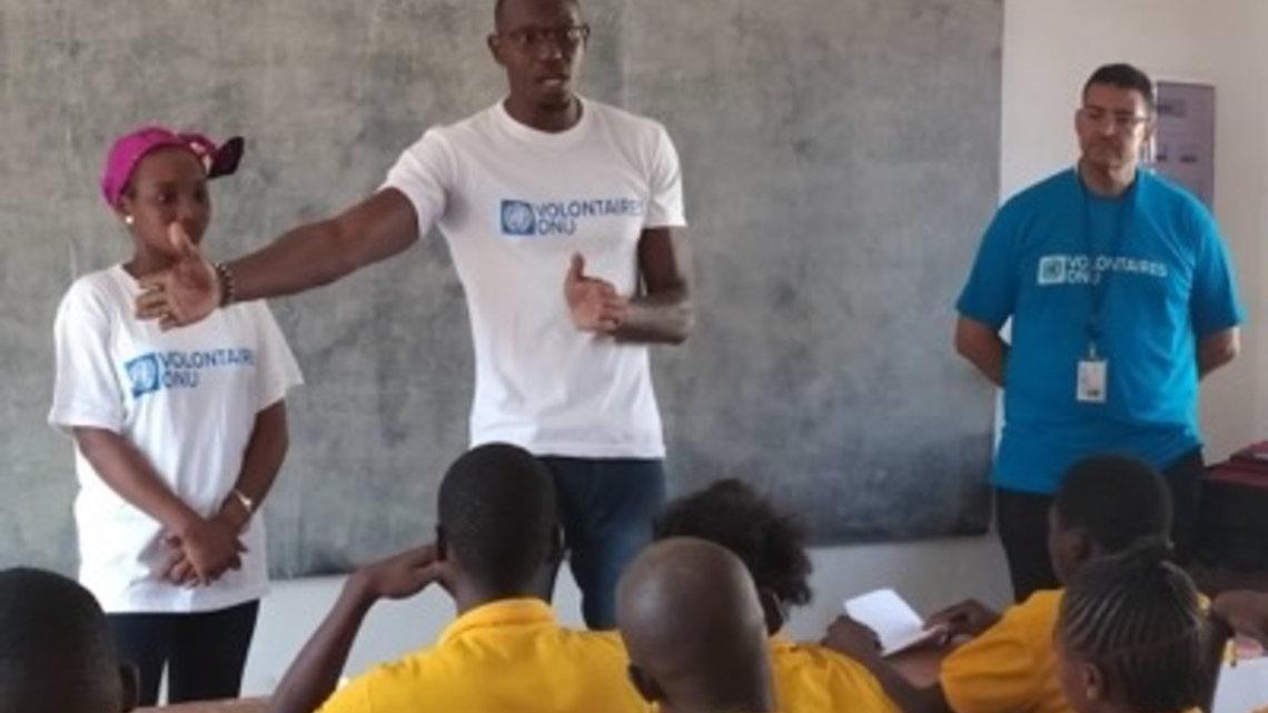 Ce sont exactement 278 Volontaires des Nations Unies (VNU) dont 56 nationaux, qui contribuent chaque jour au retour de la stabilité en République centrafricaine, dans nombreuses sphères de compétences. En ce jeudi 5 décembre 2019 où le monde entier met à l’honneur leur contribution à la paix et au développement du monde, ils ont choisi le Lycée Miskine de Bangui, pour sensibiliser les élèves sur cinq thématiques que sont le genre, les droits de l’Homme, l’environnement, le développement humain durable et le développement personnel.