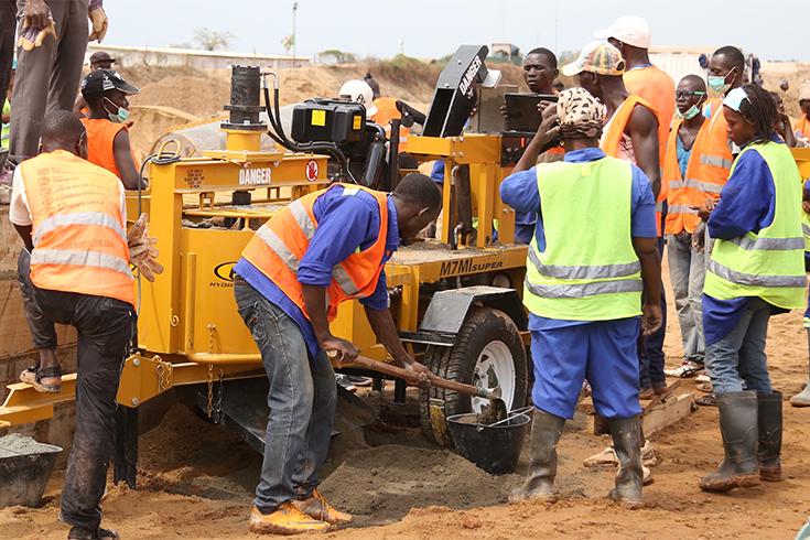 Sur le chantier, « nous avons quelque 120 personnes qui travaillent et nous avons mis 45 personnes en formation », affirme Léobard Houenou selon qui un instructeur sud-africain est aussi présent pour former, pendant deux semaines, les ouvriers centrafricains à l’utilisation des moules hydraformes. Le personnel sur le site se compose de « 40% de femmes et 60% d’hommes », une exigence de la Mission pour encourager la parité.