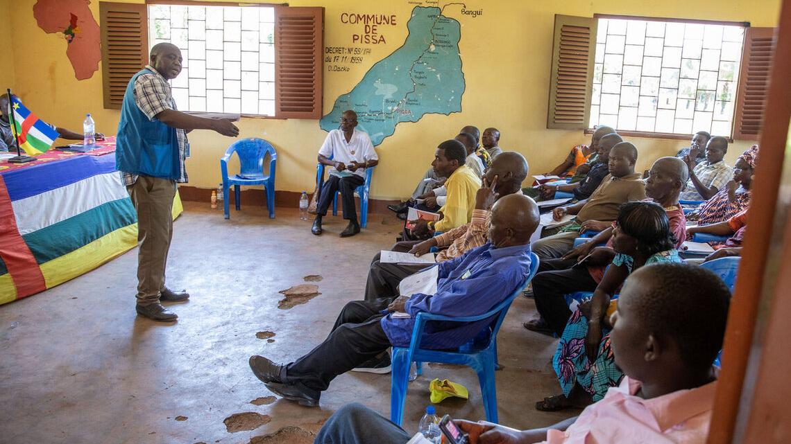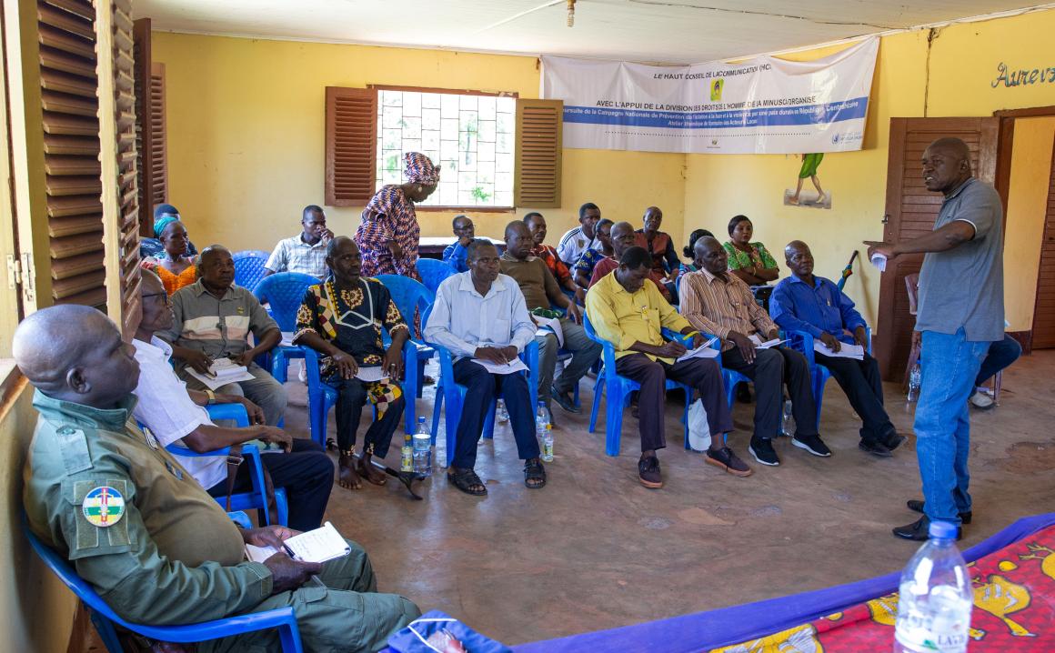 Réunis à Pissa, dans la Lobaye, sur invitation du ministère de l’Administration du territoire avec le soutien de la MINUSCA, 25 leaders communautaires, dont des chefs de village, des conseillers municipaux et des Forces de sécurité intérieure, ont passé en revue les enjeux sécuritaires liés à la transhumance dans la région. La rencontre, tenue le 8 mai 2025, devait en effet renforcer leur compréhension des problématiques de sécurité et de protection des civils, mais aussi d’identifier des réponses concrètes adaptées au contexte local.