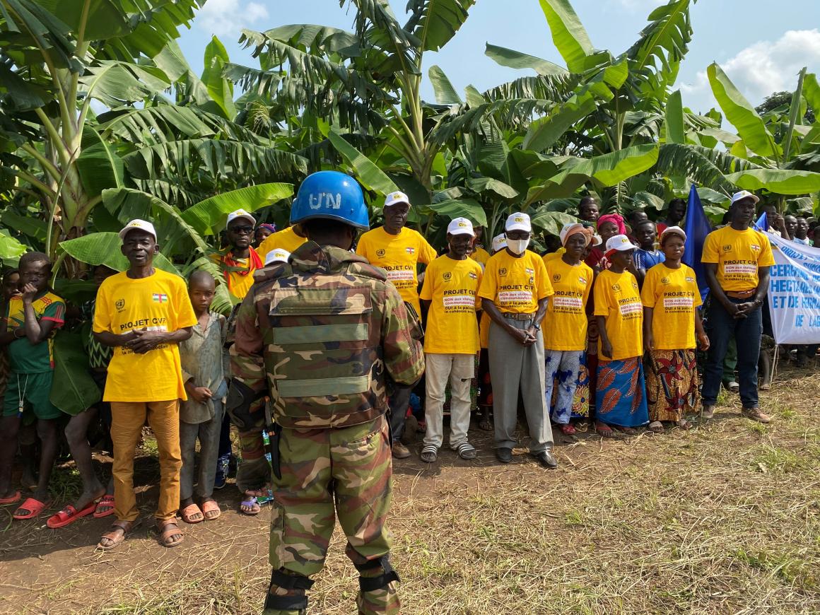 Ce sont au total 20 personnes qui en sont bénéficiaires. Pour ce faire, ils ont été formés sur la gestion coopérative et sur la technique de la culture de la banane plantain, par un expert venu du Cameroun, en collaboration avec l’Agence centrafricaine de développement agricole (ACDA). Ainsi outillés, ils ont pu réaliser ces deux plantations qui vont approvisionner la région en bananes plantains comme l’atteste leur représentant, Rémy Mbarbe : « Vous êtes en train de voir le fruit de nos efforts, mais il faudrait qu’il ait de suivi, de la part du gouvernement et de la MINUSCA. Nous remercions la MINUSCA pour sa vision et son appui. Aujourd’hui nous avons une très bonne maîtrise et nous sommes capables de former les autres en culture de bananes plantains ».