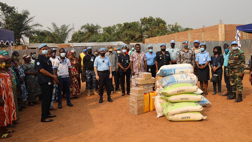 Le réseau des femmes de la composante Police de la MINUSCA a effectué, le 27 février 2021, un don en vivres et non vivres au bénéfice de 217 personnes victimes des inondations de 2019, installées sur le site de Kolongo dans le 6e arrondissement de Bangui.