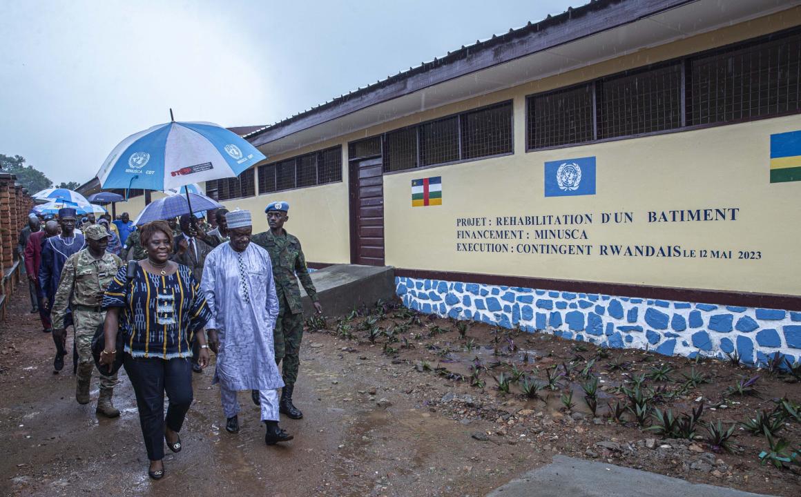 Les autorités administratives de l’école Kina ont réceptionné le 12 mai 2023, six salles de classe rénovées équipées, dans leur établissement situé dans le 3e arrondissement de Bangui. Financé et mis en oeuvre par le contingent rwandais de la MINUSCA pour environ 27 millions de FCFA, ce Projet à impact rapide contribue à donner un cadre idéal d’étude aux enfants de ladite école et au retour des déplacés dans leurs quartiers d’origine.