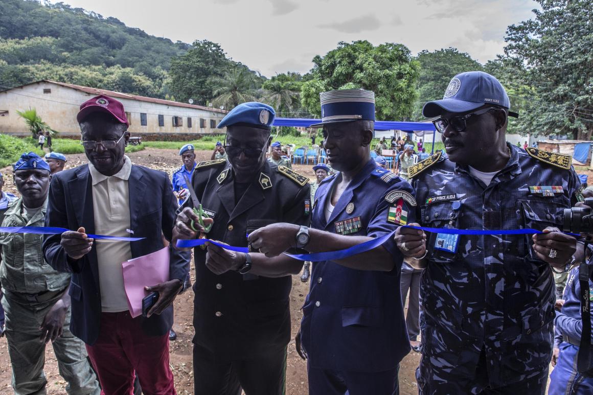 En remettant les édifices composés de 8 bureaux chacun, le Chef adjoint de la Composante Police de la MINUSCA, Habi Garba, a rappelé que « la Communauté internationale de façon générale et la Composante Police de la MINUSCA en particulier continueront à remplir avec détermination leur part de responsabilité dans l'œuvre de la restauration de la paix et de la sécurité en Centrafrique ».