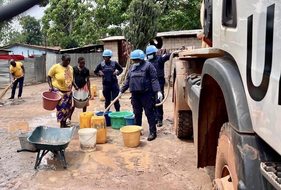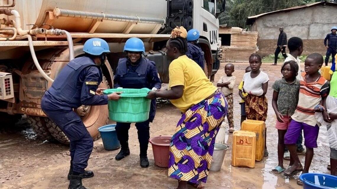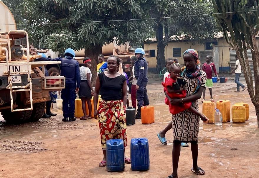 Le 10e contingent de l’unité des forces de police (FPU) du Cameroun a réalisé ce 6 septembre 2024 une opération de distribution d'eau dans la localité de Mangakpou, située dans le septième arrondissement de la ville de Bangui. Cette initiative civilo-militaire avait pour but de fournir de l'eau potable directement à la population locale.
