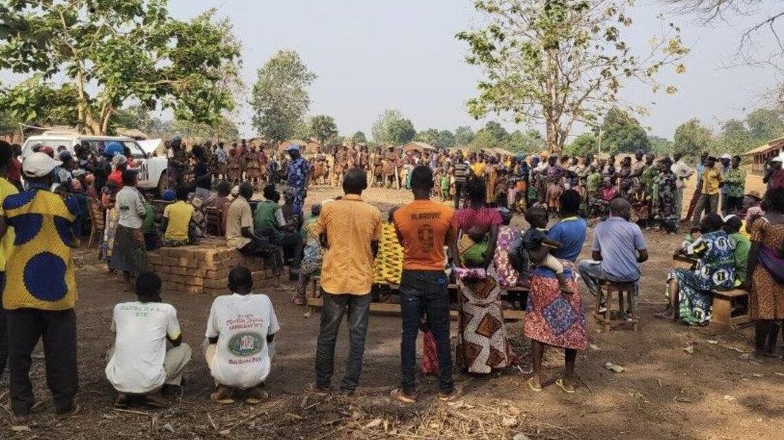 Le bureau de terrain de la MINUSCA à Bambari a tenu, le 12 février 2025, une séance de sensibilisation à la paix et à la cohésion sociale dans la Ouaka, avec la population de Chimbolo, localité située à 30 km de Bambari, sur l’axe Chimbolo. La séance a rassemblé plus de 250 habitants et a permis de revenir sur l’apport de la MINUSCA ainsi que sur les différents problèmes qui minent la région.