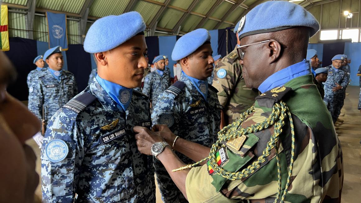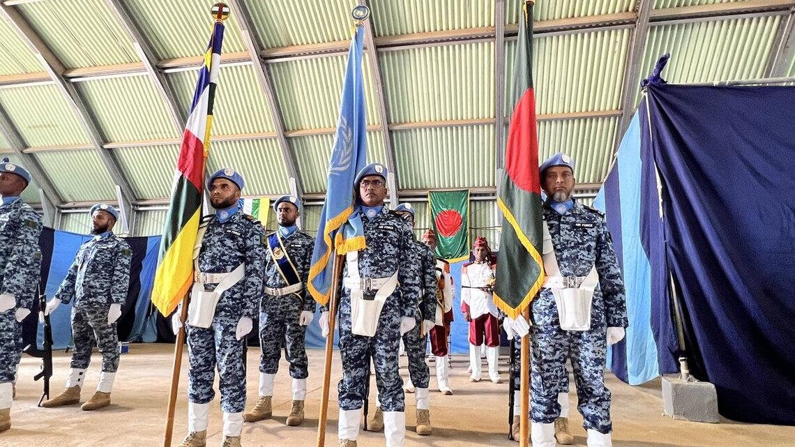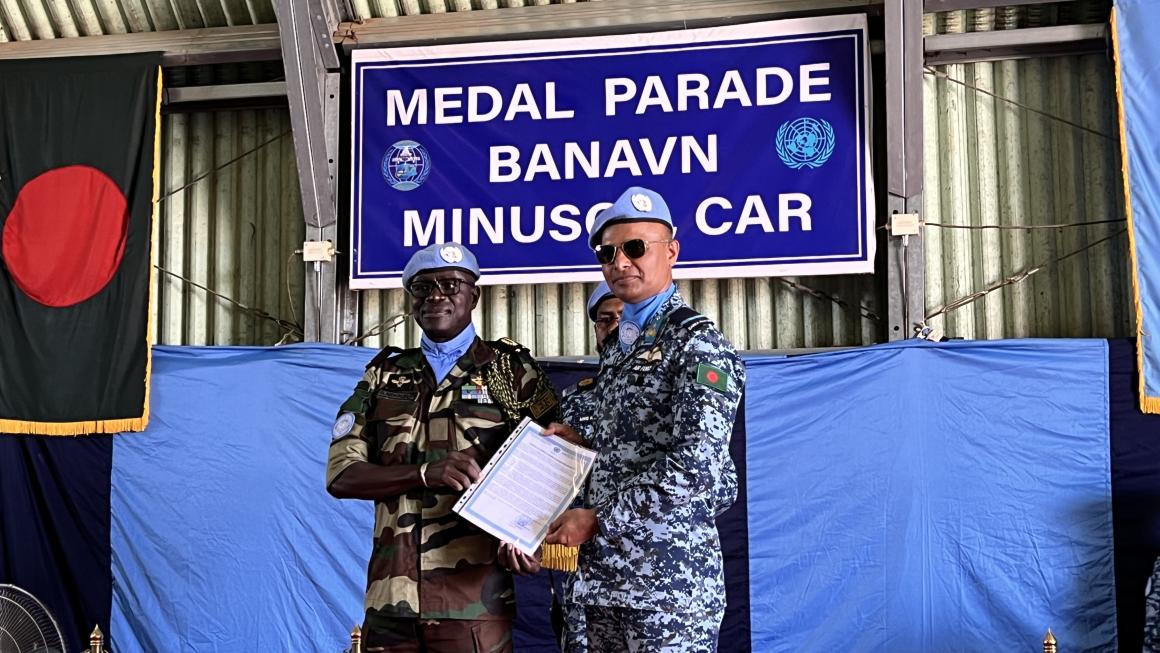 Déployée à Bouar depuis le 6 juin 2023, la 4e unité d'aviation bangladaise (BANAVN-4) a conclu sa mission le 24 mai dernier. Les efforts remarquables, la discipline et le professionnalisme de cette unité au service de la paix en République centrafricaine ont été reconnus lors d'une cérémonie organisée en présence des autorités administratives et militaires locales, ainsi que du personnel civil, policier et militaire de la MINUSCA.